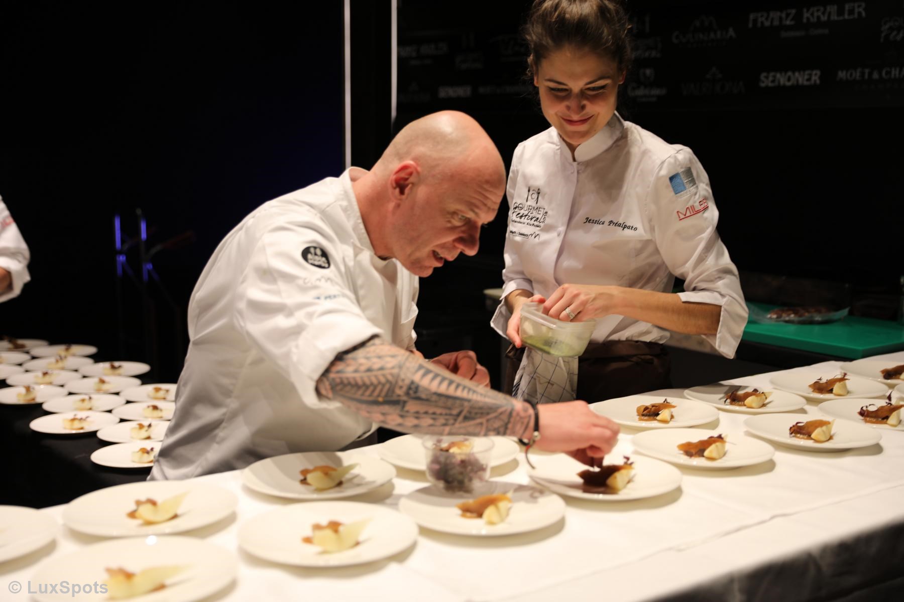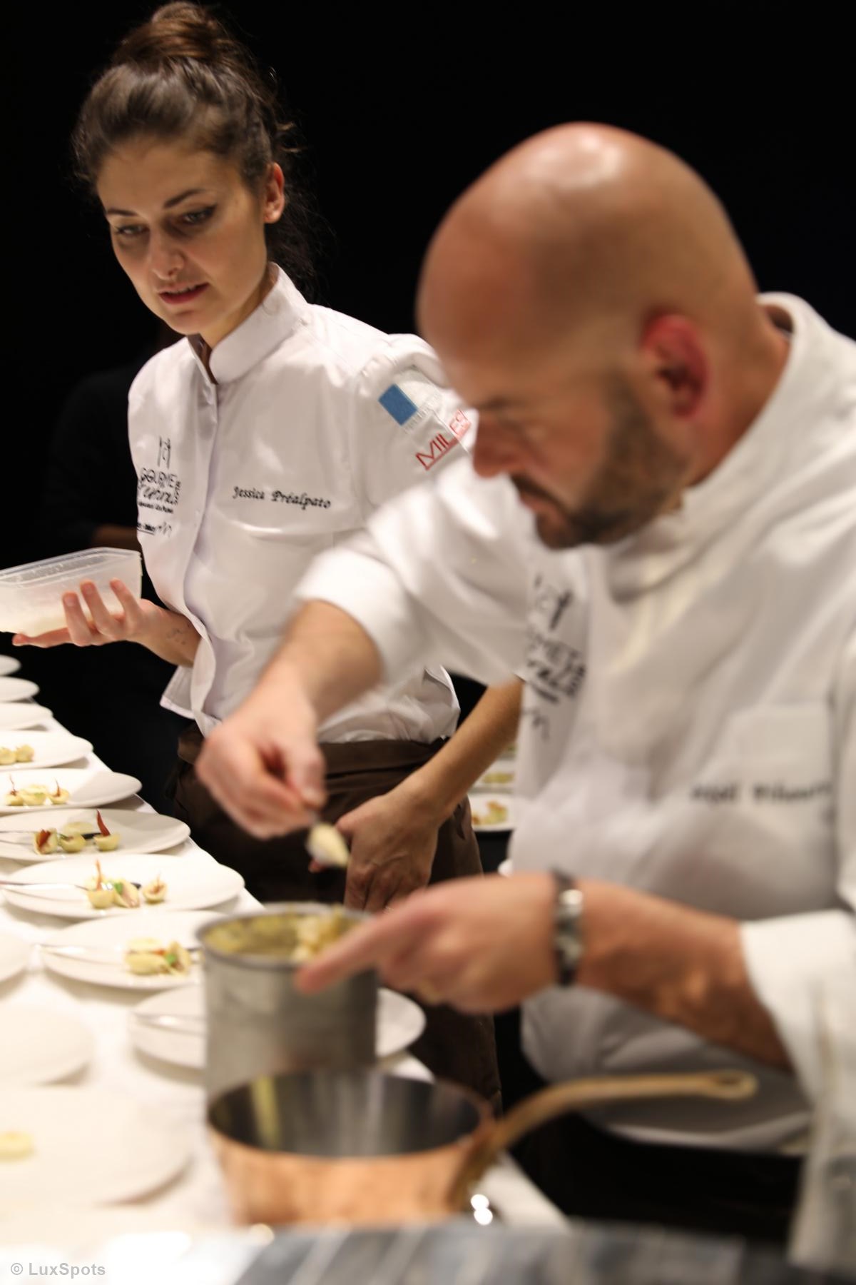 - Die französchen Spitzenköche Mickaël Pihours und Jessica Préalpato bei der Zubereitung eines Amuse Gueule