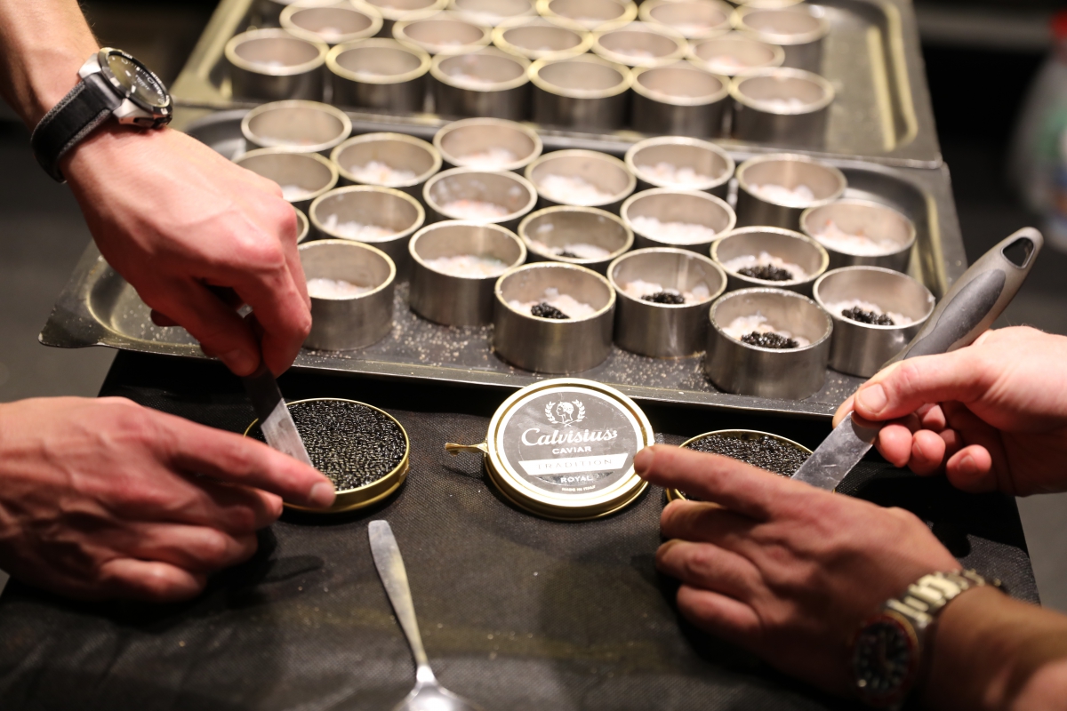 - Feinster Kaviar als Topping für den zweiten Gang „Grüner Risotto mit Scampis“