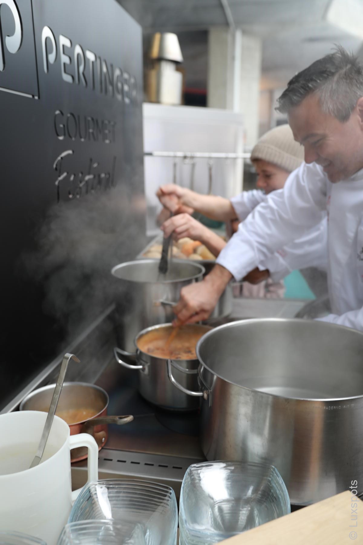 - Initiator des Culinaria Tirolensis e.V. und des Gourmetfestivals Hochpustertal, Sternekoch Chris Oberhammer, an seiner Gourmetstation beim Grand Opening