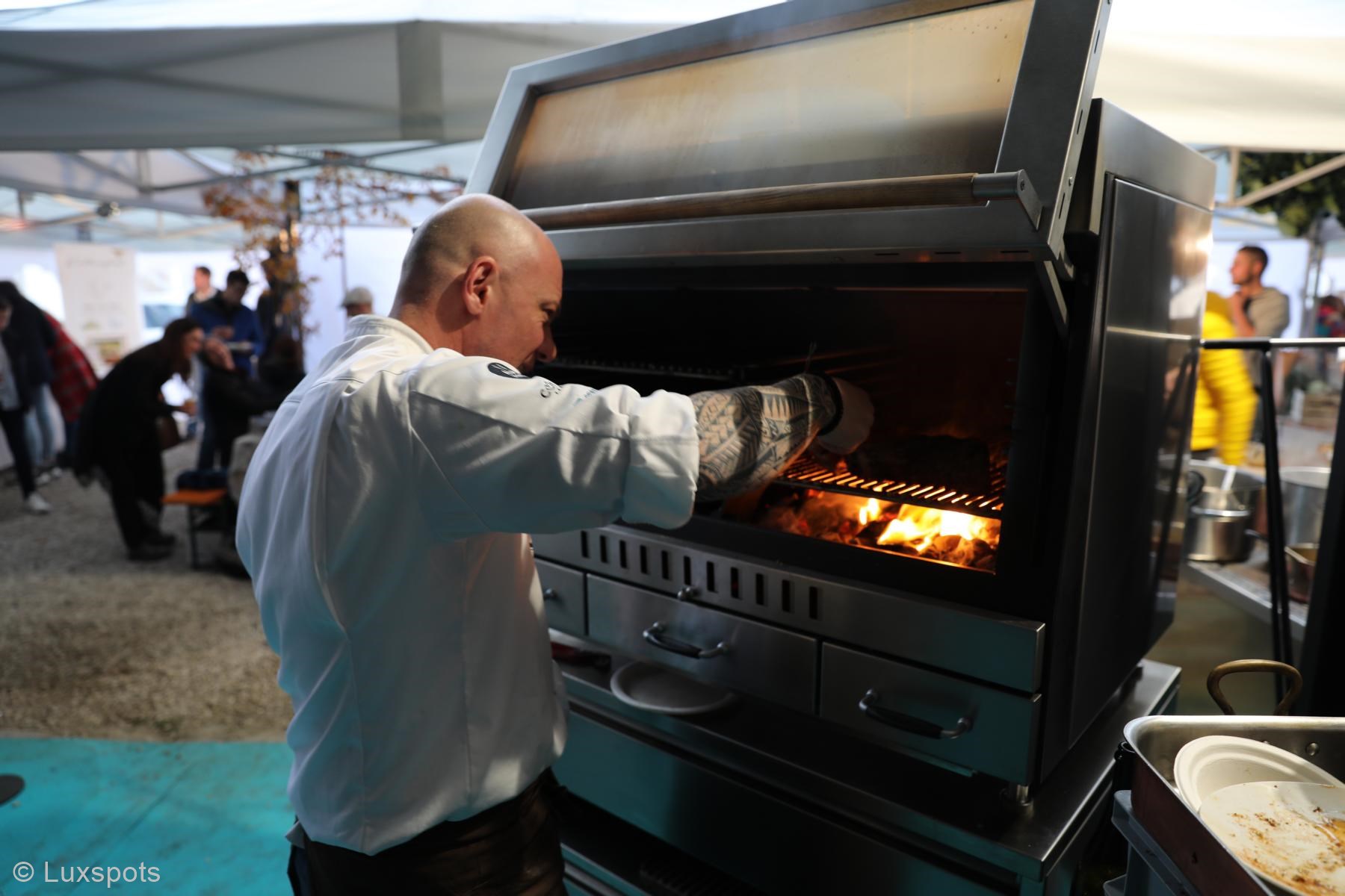 - Chris Oberhammer an einer der Grillstationen auf dem Klaudehof