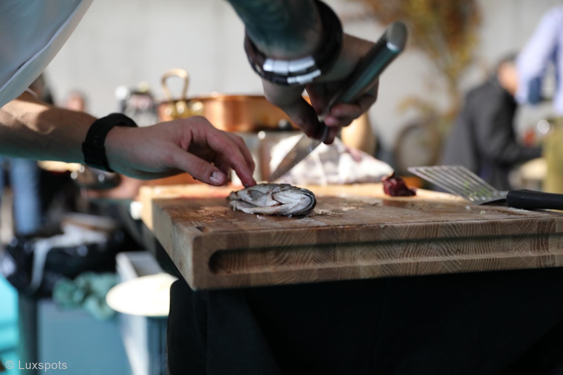 Sie alle treffen sich am dritten Tag des Festivals unweit des Restaurants Tilia auf dem Klaudehof oberhalb von Toblach, Südtirol. Hier betreibt die Familie Baur normalerweise vor allem Viehzucht und vermietet Zimmer an Touristen, die eine landwirtschaftlich geprägte Bergidylle zum Abschalten schätzen. Doch an diesem Sonntag ist alles anders: Ein Hinweisschild und weiße Zeltplanen vor einem Unterstand für Trecker und Maschinen machen auf das nicht alltägliche Event aufmerksam. Direkt neben den Stallungen werden Besucher von dampfenden Kochtöpfen, Bierbänken und einem marktplatzähnlichen Treiben zu einem „Brunch deluxe im Picknick-Stil“ empfangen. Chris Oberhammer zaubert zusammen mit seinen kochenden Kollegen, zu denen sich an diesem Tag auch der Gault-Millau Haubenkoch Hansjörg Ladurner vom Restaurant Scalottas Terroir im Schweizerhof Lenzerheide gesellt, an Ort und Stelle Spontanes aus feinen Produkten, die die Region um die Dolomiten zu bieten hat. Hierfür stellt jeder Bauer den Köchen aus seinem Repertoire Fleisch, Fisch oder Gemüse zur Verfügung, das sogleich in dampfenden Kochtöpfen oder Smokern kreativ von den Chefs verarbeitet und zu neuen Genusskreationen zusammengestellt wird. Die international renommierten Köche und Newcomer der Branche arbeiten hierbei mit viel Freude und Hand in Hand. Schlangen von Kulinarikern bilden sich vor den vielfältigen Genussstationen sowie an den Ständen der lokalen Bauern, Imker, Jäger und Winzer. Es ist ein lukullischer Event, bei dem es locker und zwanglos zugeht und gute Gespräche im Vordergrund stehen. Es ist jedoch auch ein Genussevent, das den Weg für einen zukünftig besseren beruflichen Austausch im Sinne aller Teilnehmer und der gesamten Region bereitet.